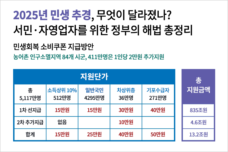 2025년 상반기, 많은 분들이 여전히 살림살이가 나아지지 않았다고 느끼고 계십니다. 물가는 오르고, 대출 이자는 무겁고, 장사는 예전 같지 않다는 이야기를 자주 듣습니다. 정부도 이런 목소리를 무겁게 받아들이고 있습니다.